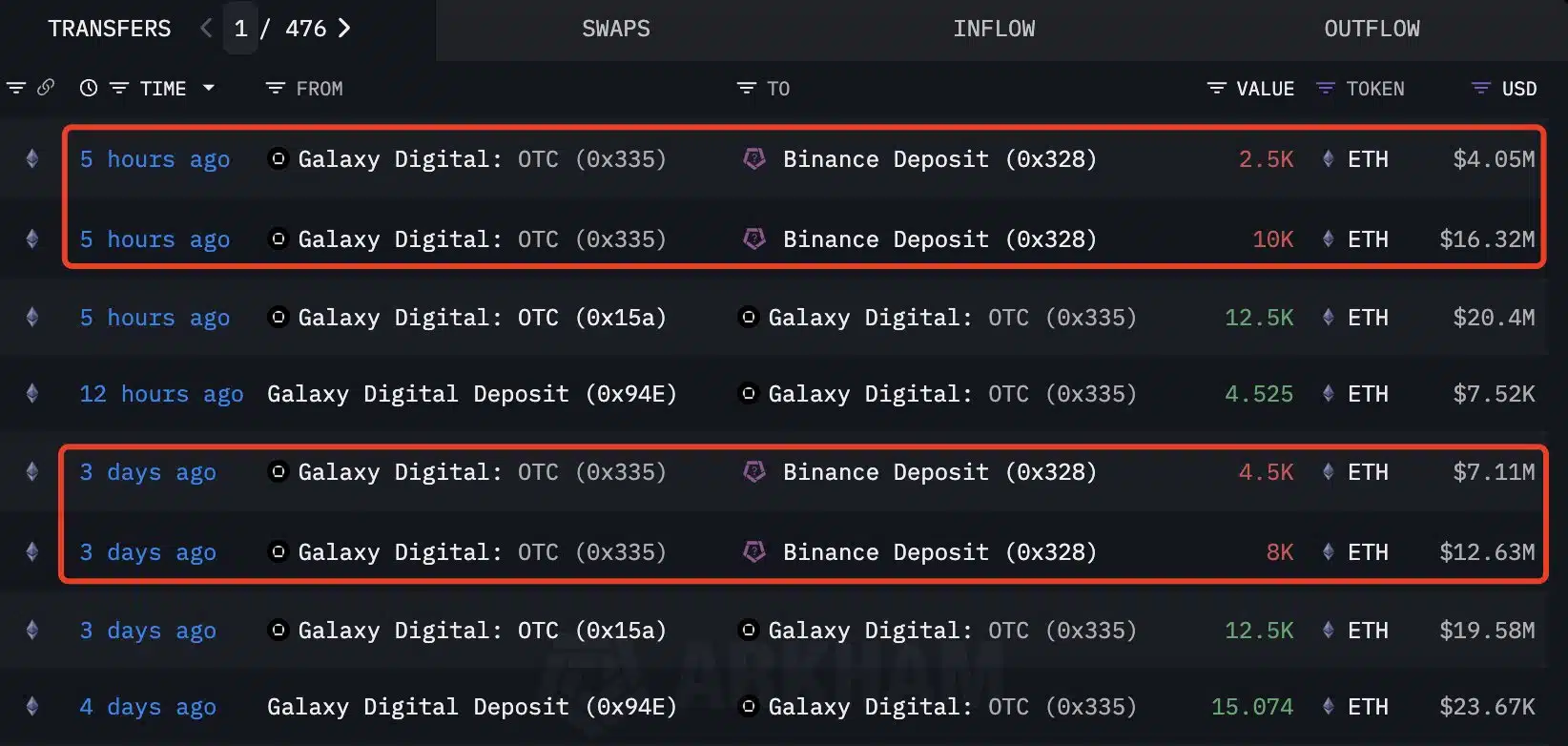 Galaxy Digital lidera la presión vendedora con más de $40 millones en Ethereum
