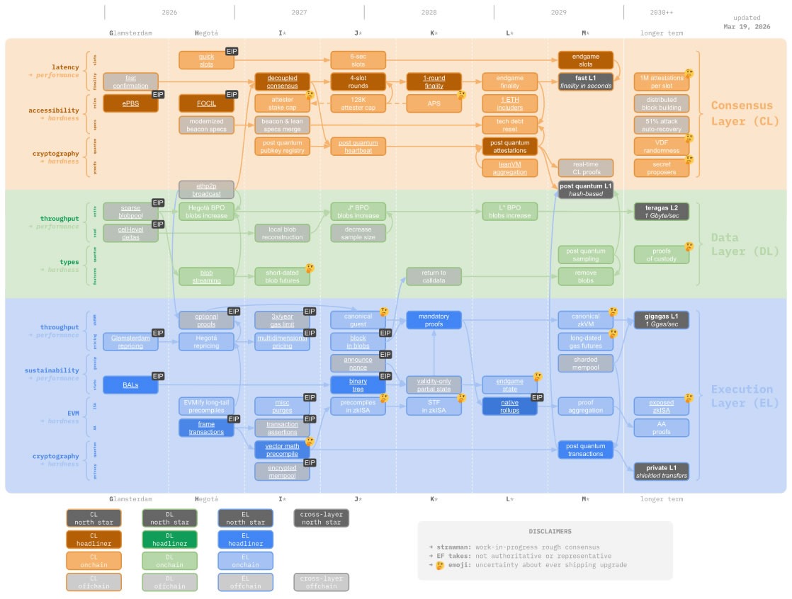 Carter señaló que los desarrolladores de Ethereum ya están trabajando en ello con un nuevo equipo de seguridad, y enlazó a una hoja de ruta postcuántica detallada para 2029 que se ha establecido como «prioridad estratégica máxima».