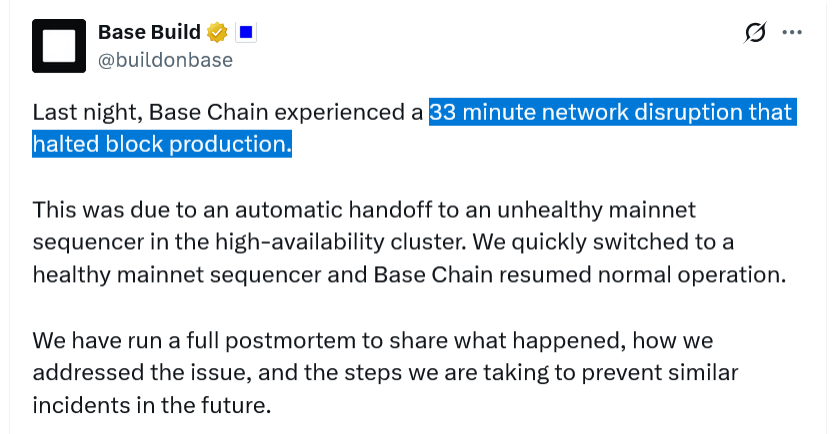 El jefe de ingeniería de Base, conocido como «aflock» en X, afirmó que Base se toma muy en serio el tiempo de actividad de la cadena, añadiendo que no puede “impulsar una economía global sin una sólida columna vertebral de red.”