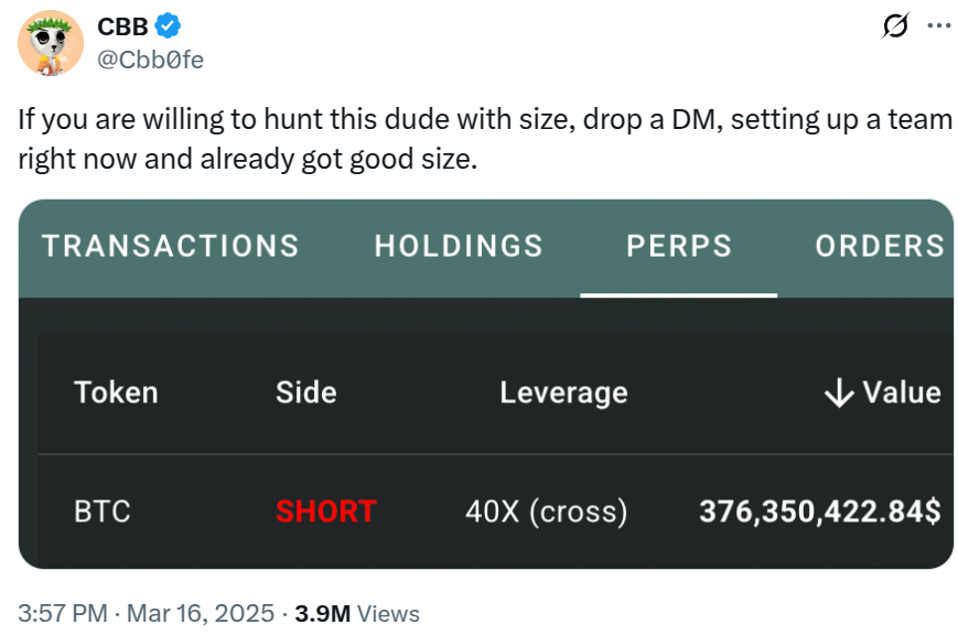 Sus comentarios siguen a la liquidación de casi 100 millones de dólares en posiciones largas de Bitcoin en Hyperliquid, supuestamente mantenidas por un trader conocido como James Wynn. El evento, que ocurrió después de que Bitcoin cayera por debajo de 105.000 dólares, desencadenó afirmaciones en X de que algunos usuarios se habían coordinado para “cazar” la liquidación de Wynn.