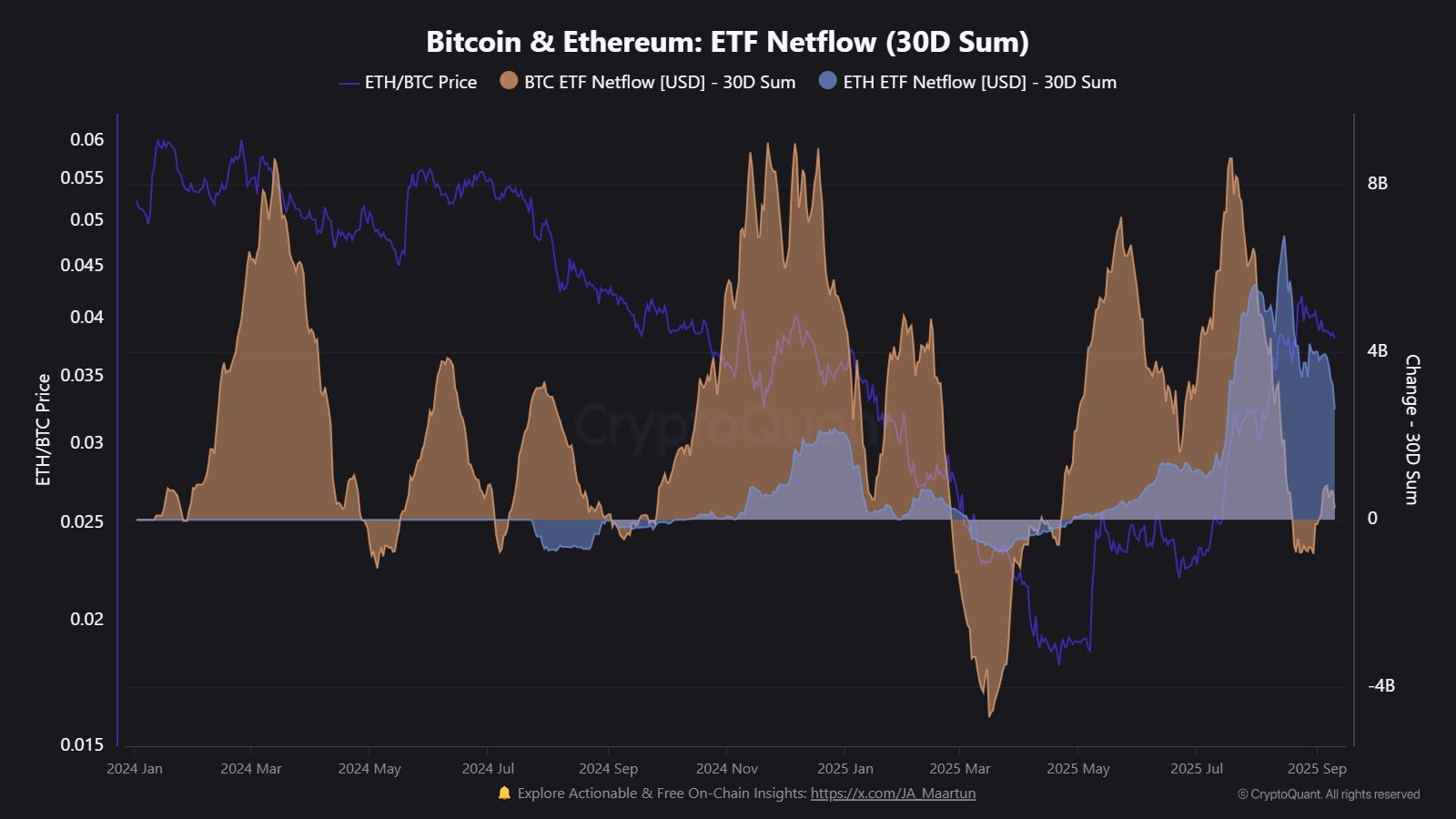 Al mismo tiempo, los flujos de entrada de ETH en los exchanges cayeron un 60% desde agosto, señalando una menor presión vendedora y confianza en la continuidad de la subida.