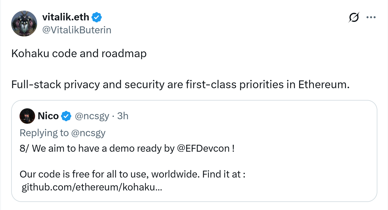 Vitalik Buterin destaca la importancia de la privacidad con el lanzamiento de Kohaku. Fuente: Vitalik