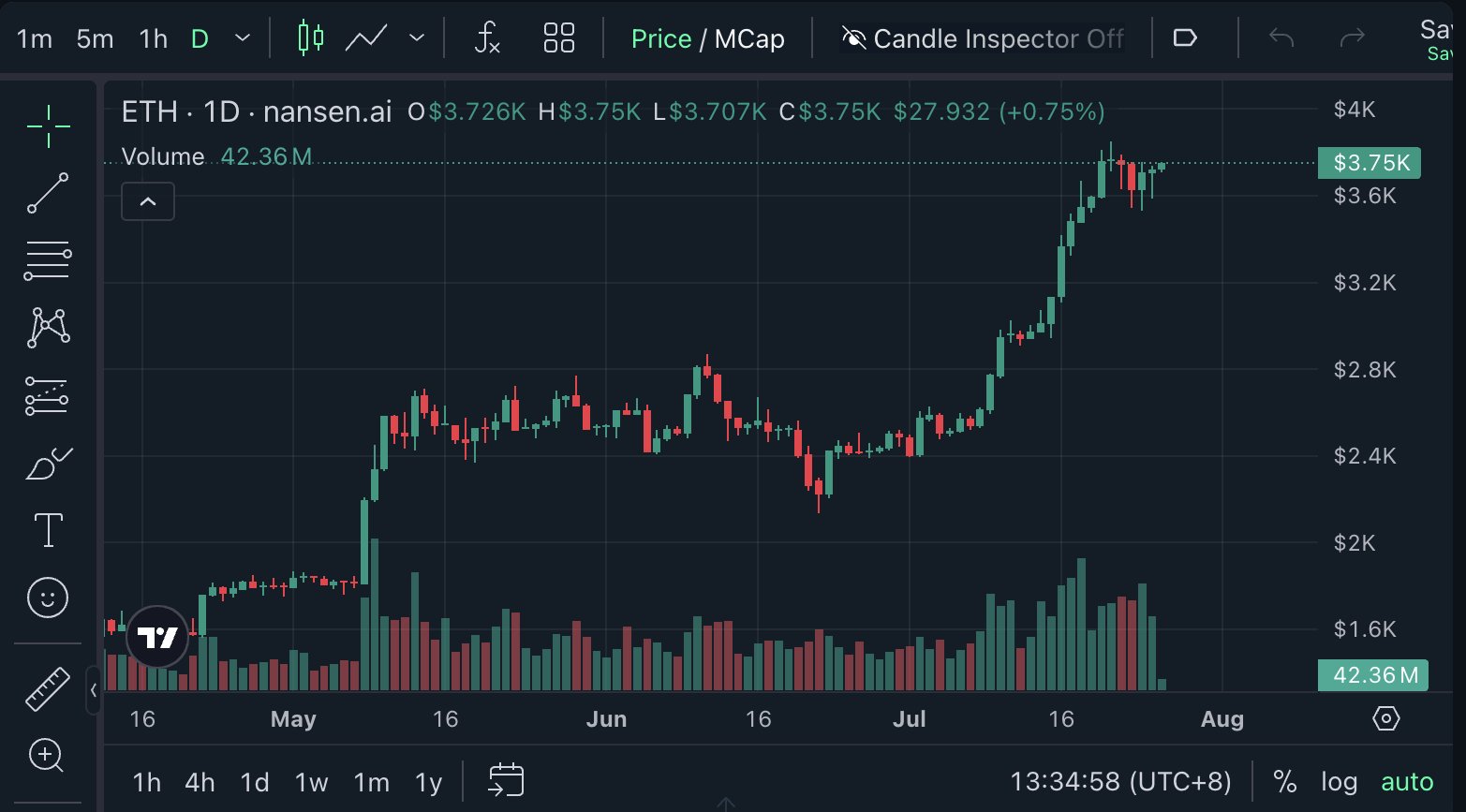Ether cotiza a 3.750 dólares al momento de la publicación, con un aumento del 51,84% en los últimos 30 días, según Nansen. Sin embargo, Santiment afirmó que también es posible que el repunte aún no haya terminado para Ether, ya que otros indicadores sugieren que el mercado no ha alcanzado su «punto máximo de efervescencia».