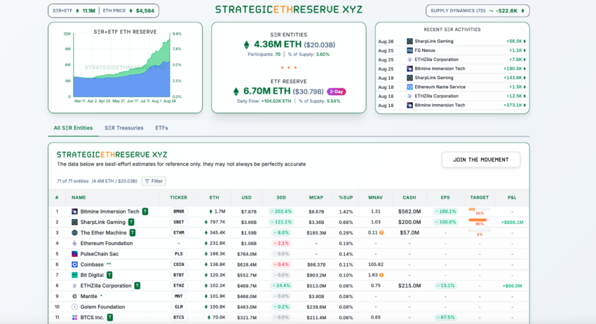 BitMine ha acumulado más de 1.5 millones de ETH desde julio, gastando más de 5.6 mil millones dólares. SharpLink ha añadido alrededor de 740,000 ETH desde junio.