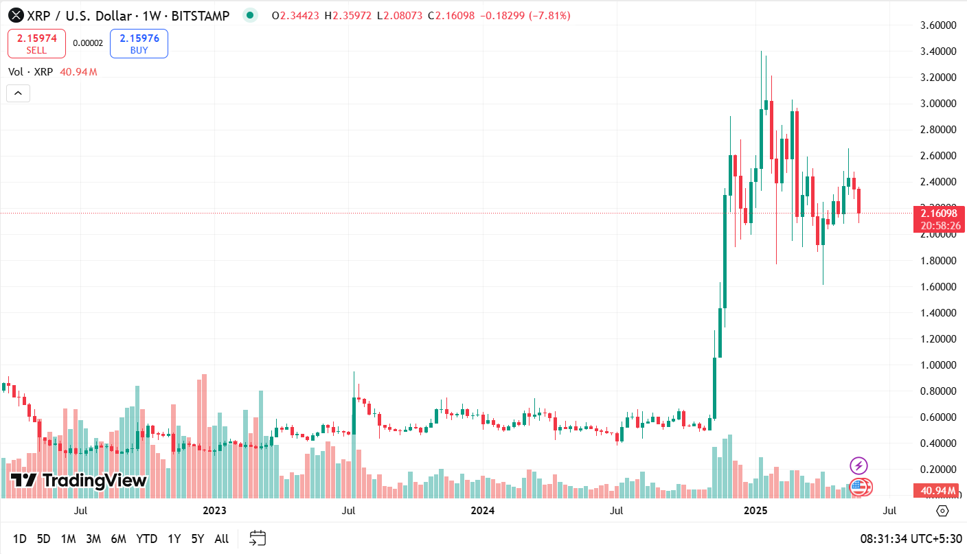 If XRP falls below this support, the next levels to watch would be around $2.05 and $2.00. A drop under $2.00 could signal a bigger decline in the coming days or weeks.