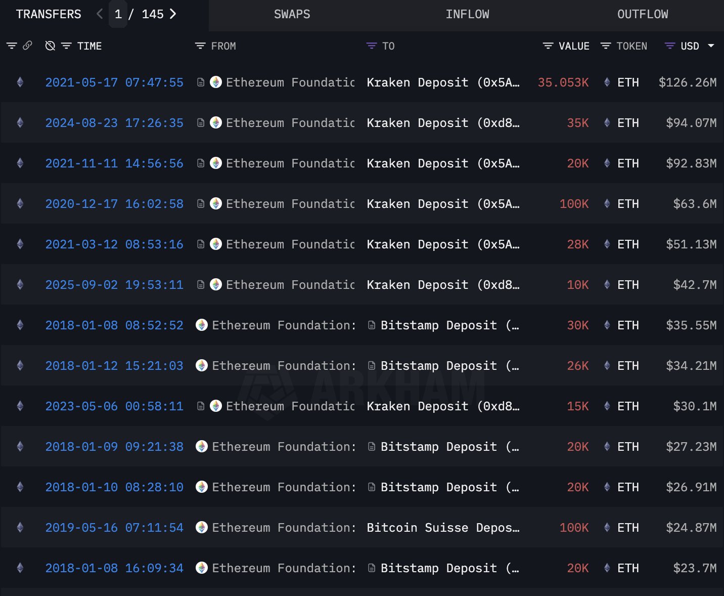 Este movimiento se hizo público, siguiendo ventas previas de ETH por parte de EF. Según estadísticas de observadores, los monederos etiquetados por EF han depositado aproximadamente 2,78 mil millones de dólares en CEX durante los últimos 10 años.