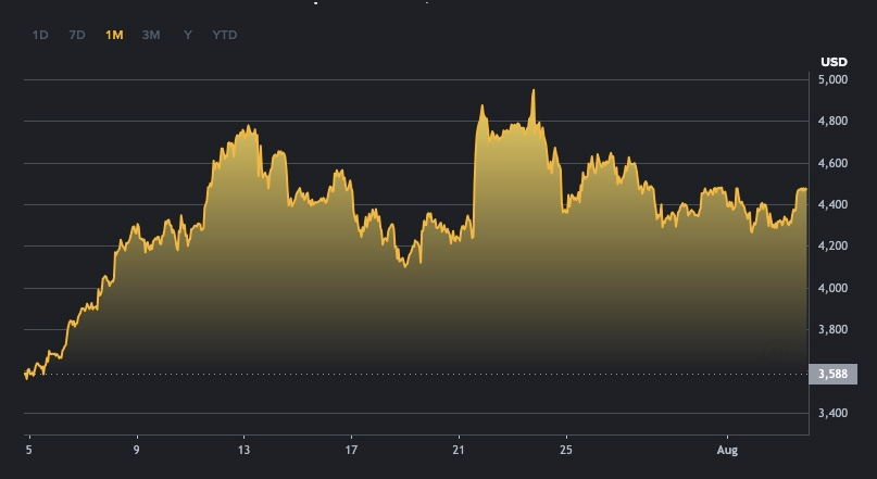 Si bien a comienzos de septiembre ETH experimentó una recaída, acomodándose por debajo de los USD 4.600, al estudiar su comportamiento a lo largo del año, llama la atención una valorización de más del 100% desde mediados de abril donde ETH cayó por debajo de los USD 1.600.