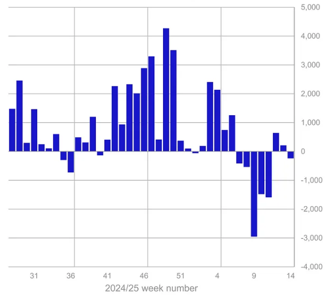 Las nuevas salidas probablemente reflejan la cautela de los inversores en respuesta a los aranceles comerciales globales impuestos por Estados Unidos y las preocupaciones sobre su potencial amenaza para el crecimiento económico mundial, dijo el jefe de investigación de CoinShares, James Butterfill.