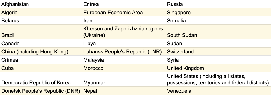 30 jurisdicciones excluidas del lanzamiento