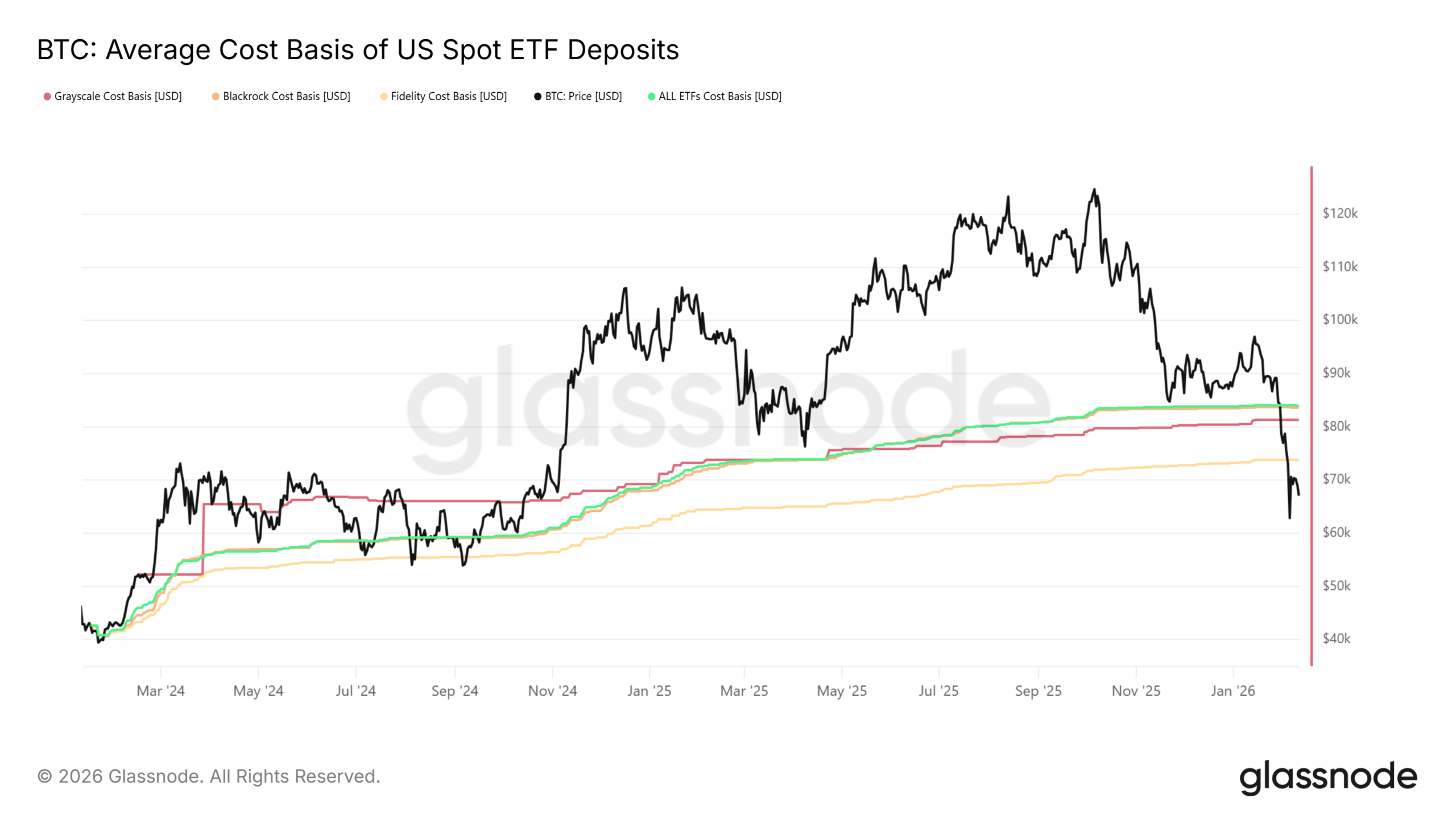 En comparación, Bitcoin está actualmente valorado en 66.171 dólares, también por debajo de su costo base estimado de ETF de 84.063 dólares, aunque la caída es notablemente menor, en un 21%.