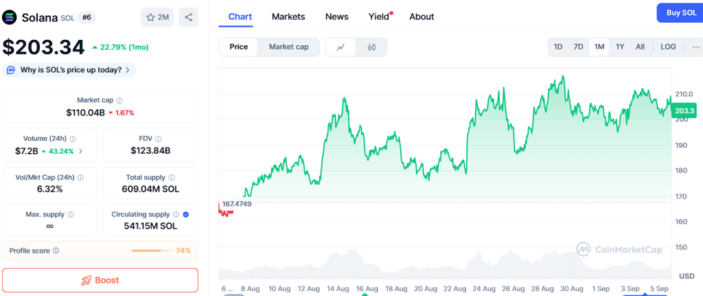 Solana has built a popularity as one of the fastest and most scalable blockchains in the industry, making it a prime desire for developers constructing decentralized applications (dApps), NFT systems, and DeFi projects. With its current price at $203, SOL has already shown remarkable healing from preceding lows and continues to attract interest due to its lightning-rapid transactions and low costs.
