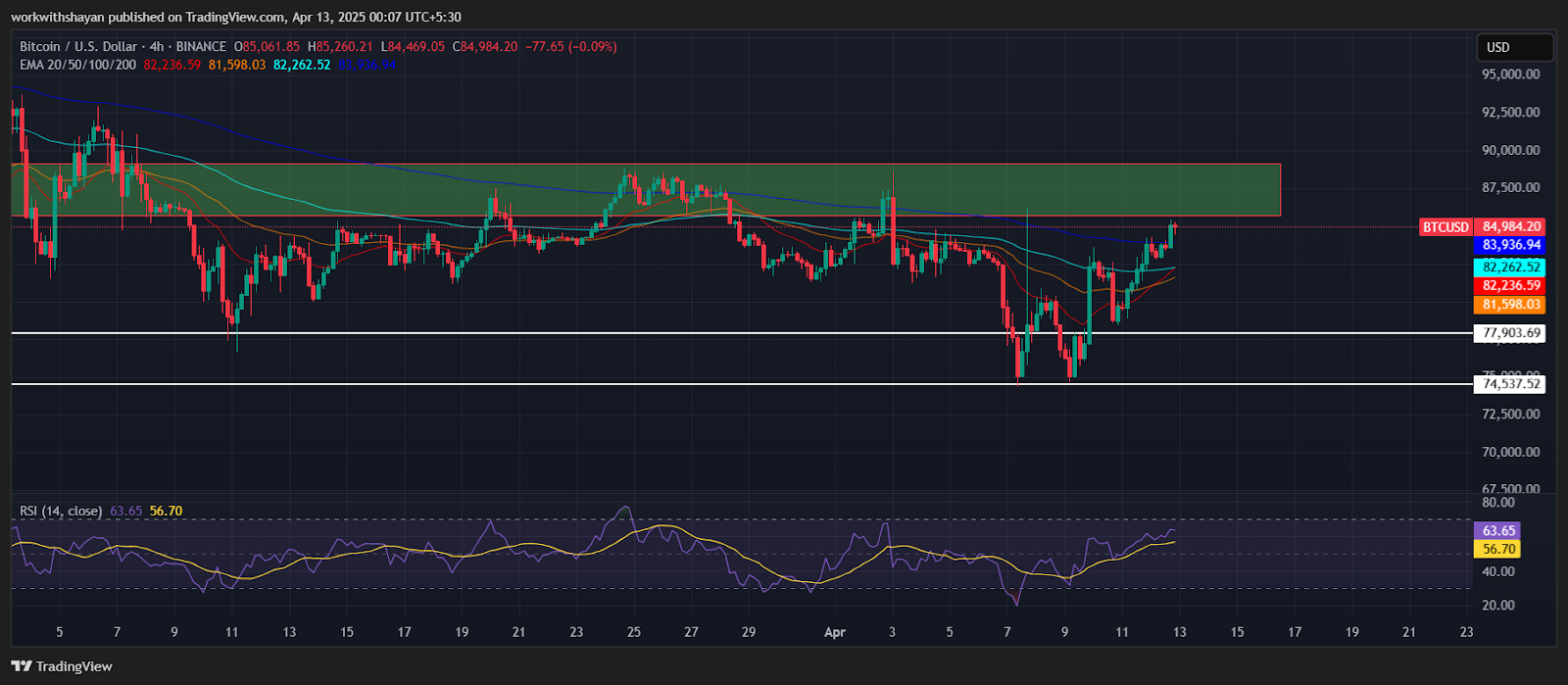 Bitcoin has surged above the crucial $85K level and is now aiming to maintain its recovery rally toward upcoming resistance channels. As of writing, BTC price trades at $84,864, surging over 3.2% in the last 24 hours.